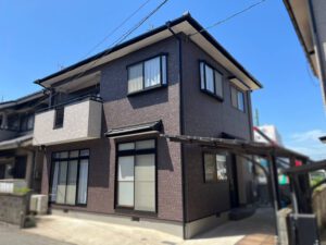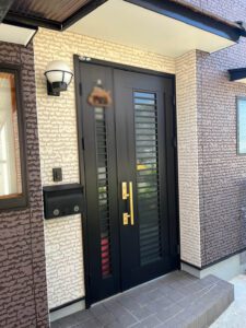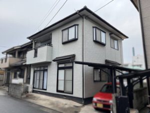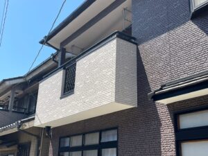 ◇施工後コメント ダブルトーンにて施工。ベランダ部分と玄関部分の色分けをし、おしゃれなお家に仕上がりました。