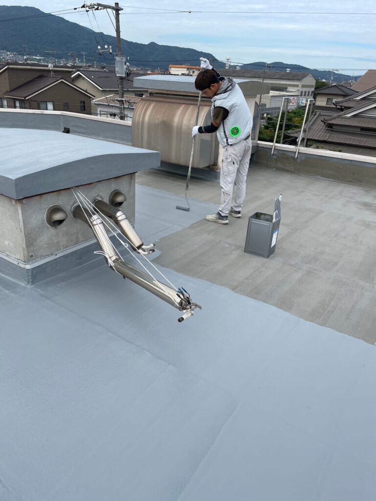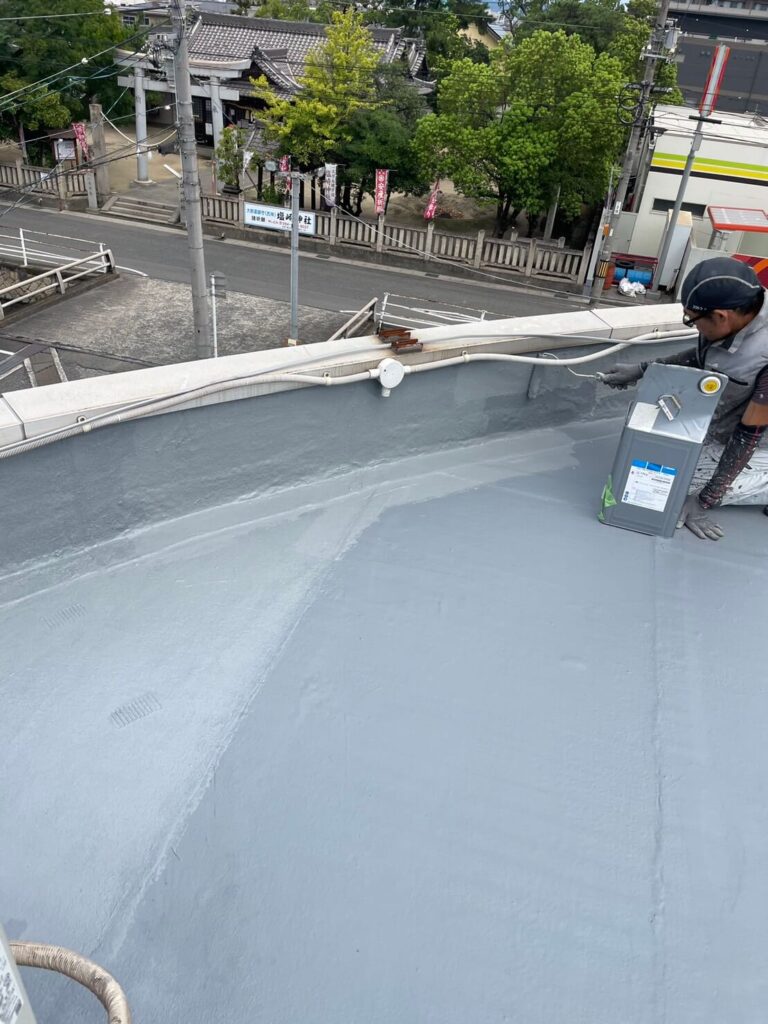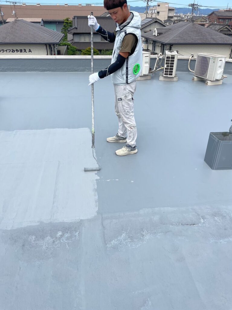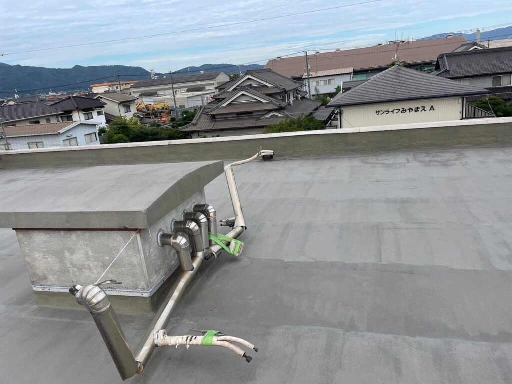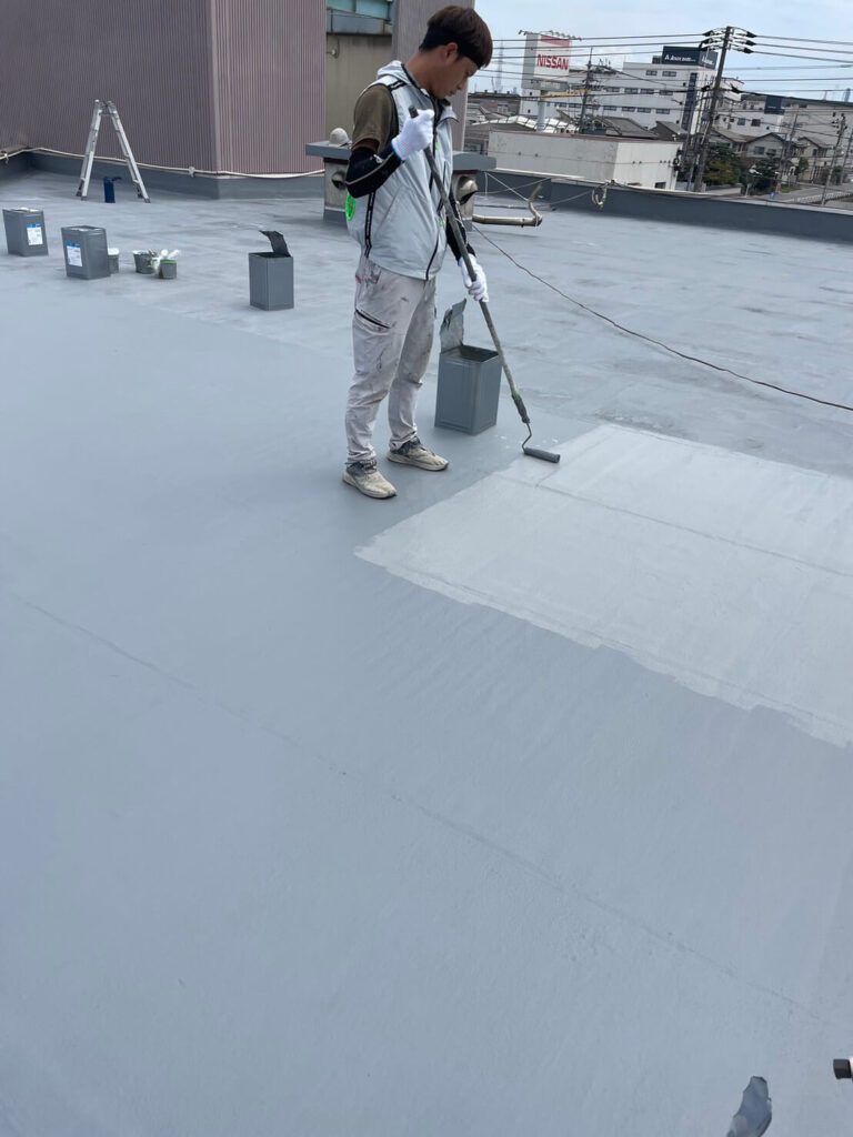 既存アスファルト防水が劣化して雨漏りをしてましたので、セメント系防水での施工をしました。