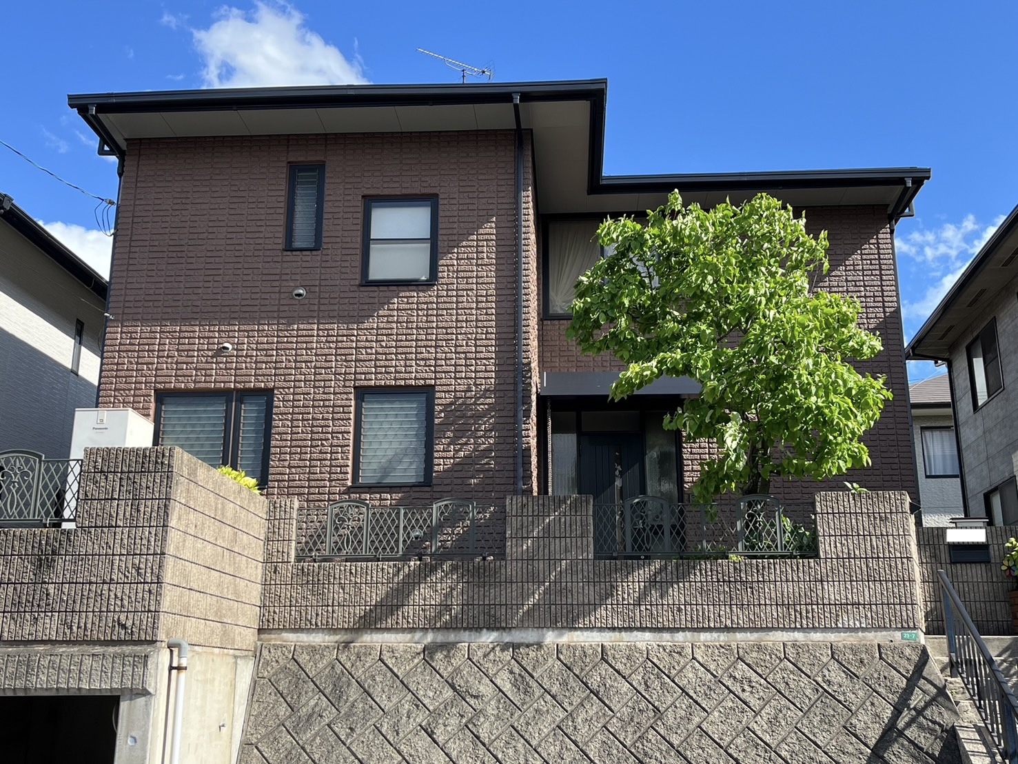 外壁は低汚染の高級感のある多彩模様を吹付施工させて頂きました。