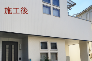 通常のアクリル塗料では経年劣化が早く、色あせが目立ち、汚れも気になります。 外壁塗り替え時に外壁の色がなるべく長く持つようにフッ素塗料をご提案。 長期耐久性と汚れが付きにくく光沢も一際違うフッ素塗装に施主様も大満足!