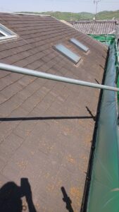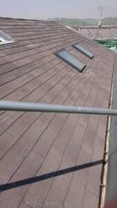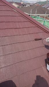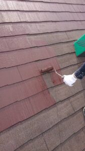屋根施工前 ▶︎ 高圧洗浄機 ▶︎ 下塗り ▶︎ 中塗り ▶︎ 上塗り